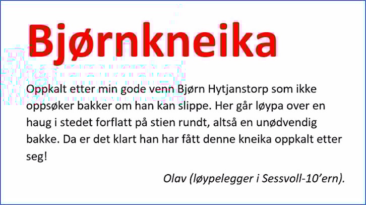 - Løypa vil være den samme som de to foregående årene - Sessvoll-10'ern - 5 runder = 50 km.