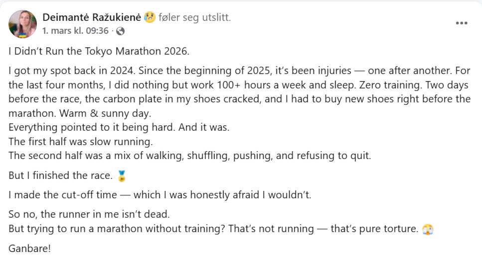 Knut Bøvre og Deimante Razukiene løp Tokyo Marathon